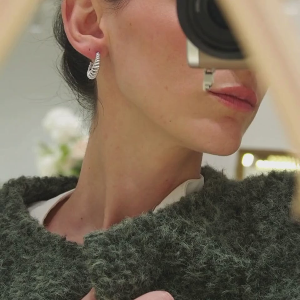 Ces créoles fines et lumineuses sont également disponibles en argent massif 925, idéales pour celles qui recherchent un bijou durable, hypoallergénique et tendance. Grâce à leur format original mais sophistiqué, elles s’adaptent parfaitement à un look de tous les jours comme à une occasion spéciale.